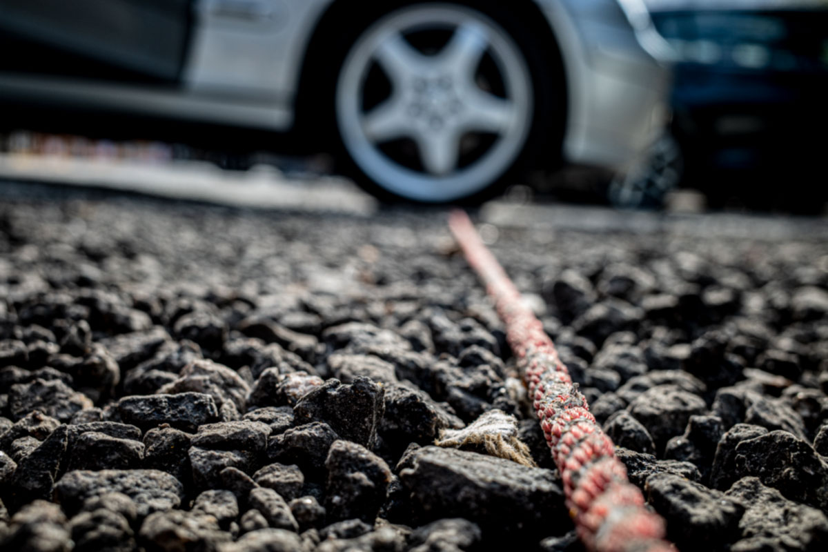 String is used to mark out the car parking spaces in the Tsuen Wan West parking lot chosen by the government to showcase the new technology